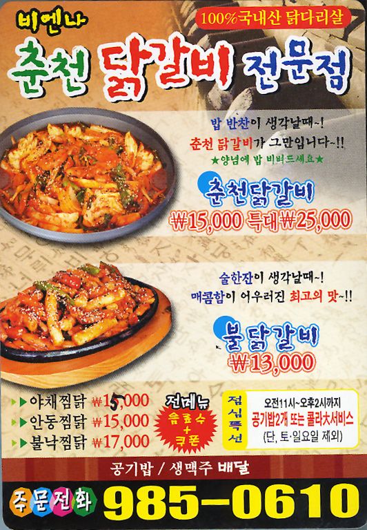 비엔나 춘천닭갈비 전문점 하고 춘천닭갈비, 불닭갈비 좀